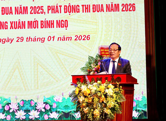 Hội nghị cũng đã biểu dương, khen thưởng các tổ chức cơ sở Đảng tiêu biểu và trao bằng khen, giấy khen các cấp cho các tập thể, cá nhân có thành tích xuất sắc năm 2025, đồng thời phát động phong trào thi đua năm 2026./.