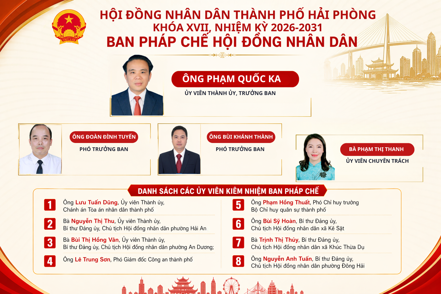 Infographic: Ban Pháp chế Hội đồng nhân dân thành phố Hải Phòng khóa XVII, nhiệm kỳ 2026-2031