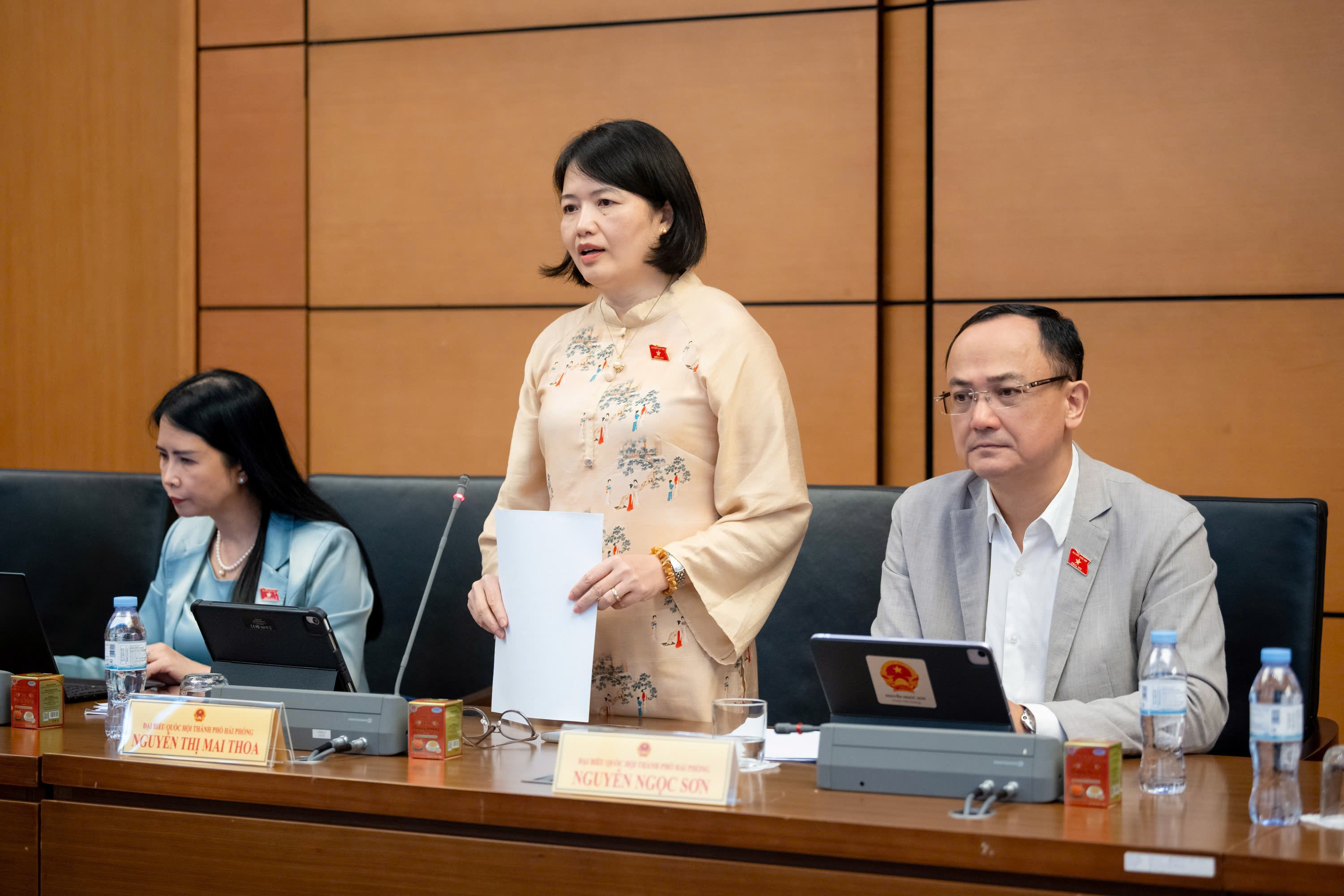 Đại biểu Nguyễn Thị Mai Thoa, Ủy viên Ủy ban Văn hóa và Xã hội của Quốc hội đề xuất thêm một số nội dung liên quan đến vấn đề xã hội, trực tiếp là công tác chăm sóc, bảo vệ và giáo dục trẻ em.