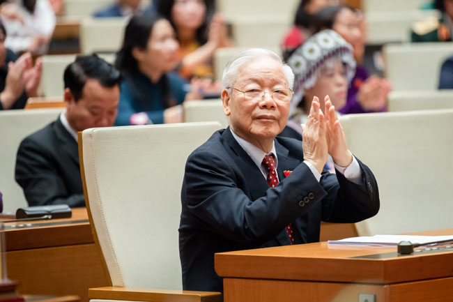 Tham dự phiên bế mạc Kỳ họp có Tổng Bí thư Nguyễn Phú Trọng; nguyên Tổng