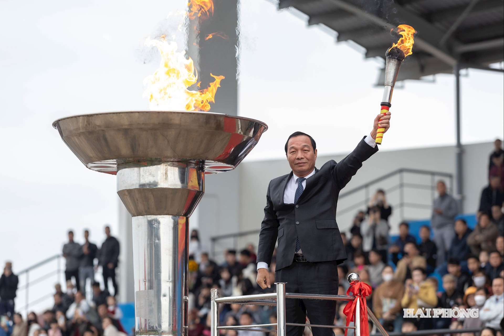 Chủ tịch HĐND thành phố Lê Văn Hiệu thực hiện nghi thức thắp lửa truyền thống, khơi dậy khí thế