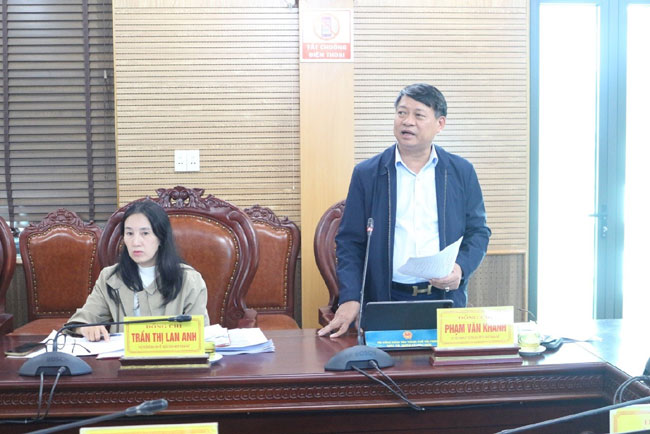 Đồng chí Phạm Văn Khanh, Ủy viên Thành ủy, Trưởng ban Ban Đô thị HĐND thành phố phát biểu tại hội nghị