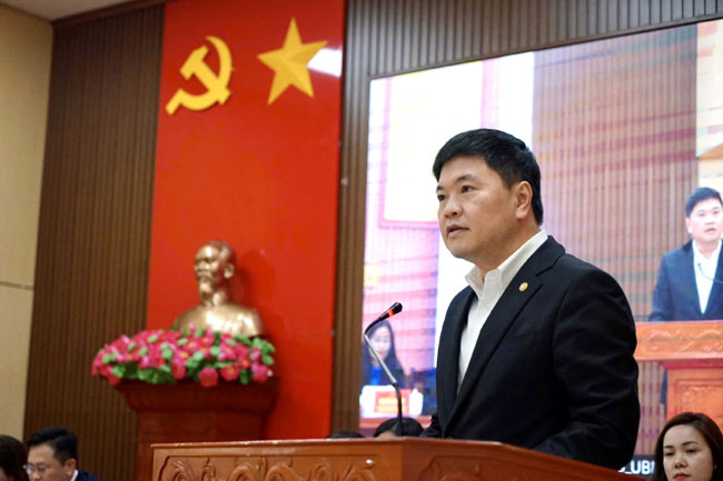 Phó Chủ tịch UBND thành phố Hoàng Minh Cường thay mặt các ứng cử viên cảm ơn cử