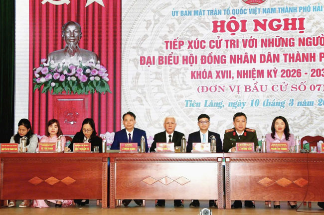 Chiều ngày 10/3/2026, tại xã Tiên Lãng, Ủy ban MTTQVN thành phố tổ chức Hội nghị tiếp xúc cử tri với những người ứng cử đại biểu HĐND thành phố, nhiệm kỳ 2026 - 2031 tại Đơn vị bầu cử số 7. Hội nghị được kết nối trực tuyến tới 08 điểm cầu các xã: An Khánh, An Quang, An Hưng, Quyết Thắng, Tân Minh, Tiên Minh, Chấn Hưng và Hùng Thắng.