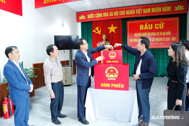 Chiều ngày 11/3/2026, Đoàn kiểm tra số 7 do đồng chí Bùi Đức Quang, Phó Chủ tịch HĐND thành phố làm trưởng đoàn, kiểm tra công tác chuẩn bị bầu cử đại biểu Quốc hội khóa XVI và đại biểu HĐND các cấp nhiệm kỳ 2026 - 2031 tại một số khu vực bỏ phiếu ở các xã: Hùng Thắng, Chấn Hưng, Tiên Minh, Tân Minh, Tiên Lãng, Quyết Thắng.