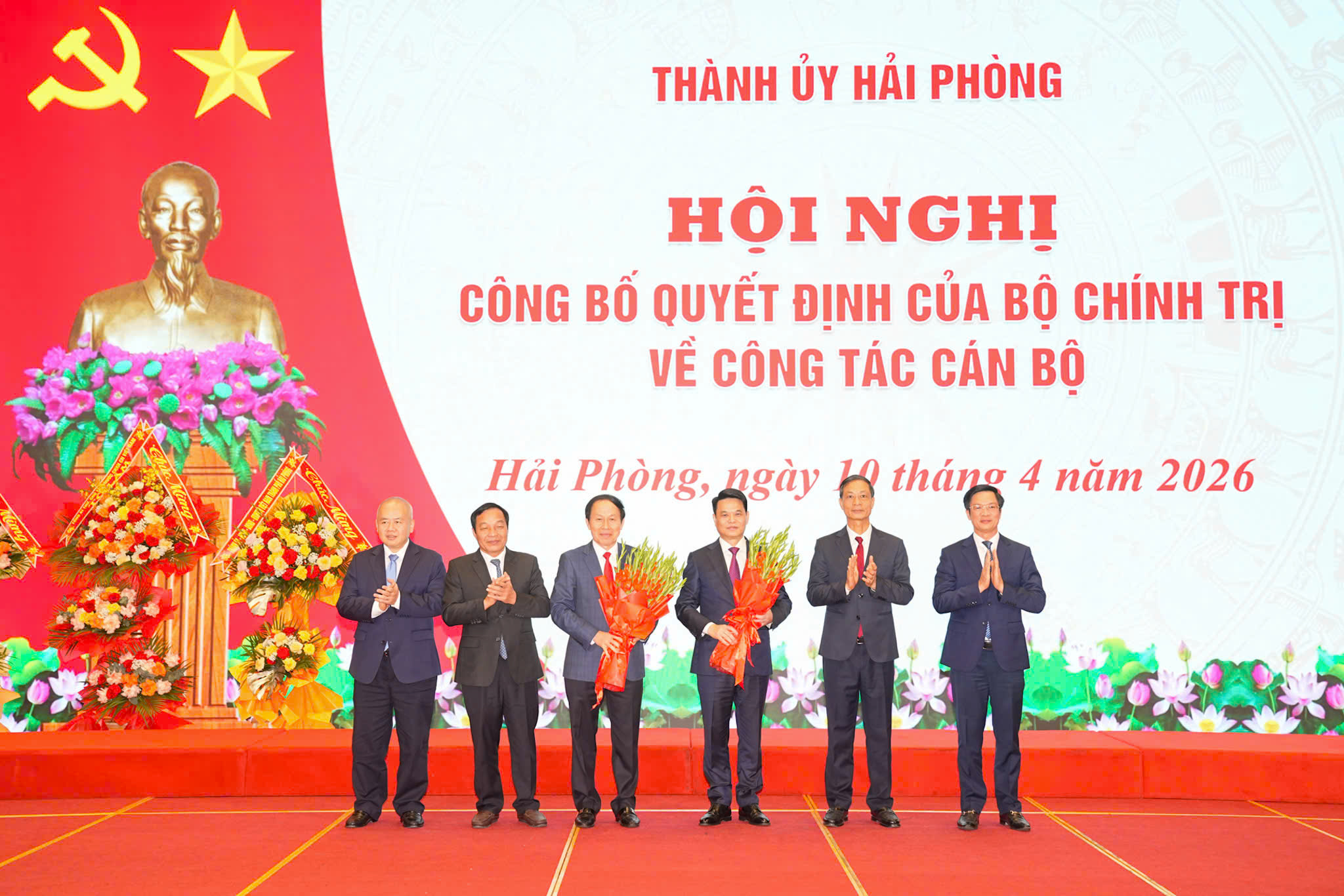 Sáng ngày 10/4/2026, Thành ủy Hải Phòng tổ chức Hội nghị công bố Quyết định của Bộ Chính trị về công tác cán bộ. Dự về phía Trung ương có các đồng chí: Nguyễn Duy Ngọc, Ủy viên Bộ Chính trị, Bí thư Trung ương Đảng, Trưởng Ban Tổ chức Trung ương; Lê Tiến Châu, Ủy viên Trung ương Đảng, Phó Thủ tướng Chính phủ, nguyên Bí thư Thành ủy Hải Phòng và đại diện lãnh đạo các Ban cơ quan Trung ương. Dự về phía lãnh đạo thành phố có các đồng chí: Lê Ngọc Châu, Ủy viên Trung ương Đảng, Phó Bí thư Thành ủy, Chủ tịch UBND thành phố, Trưởng Đoàn đại biểu Quốc hội thành phố Hải Phòng; Đỗ Mạnh Hiến, Phó Bí thư Thường trực Thành ủy; Lê Văn Hiệu, Phó Bí thư Thành ủy, Chủ tịch HĐND thành phố; Phạm Văn Lập, Phó Bí thư Thành ủy, Chủ tịch Ủy ban MTTQVN thành phố; Đỗ Thành Trung, Phó Bí thư Thành ủy; lãnh đạo Bộ Tư lệnh Quân khu 3 và lãnh đạo các Sở, ngành, đơn vị, địa phương.